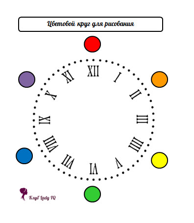 Также, в этой книге предлагается сделать для творческих занятий с ребенком цветовой круг. Можно нарисовать красками, но мы с Андрюшей, вырезали все цвета из карточек, поэтому сам круг нарисовали перманентным маркером и приклеили цветные кружочки так, как предлагалось расположить основные и дополнительные цвета.