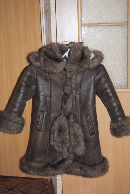 Дубленка для девочки на 3-4 года. Отдам вместе с тепленькими штанишками на лямках. 500р.!