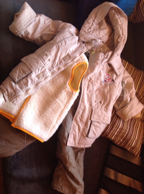 Зимний комплект (куртка, комбинезон, шерстяная подстежка) для мальчика на синтепоне. 500 рублей. Вышлю почтой. Находится в Егорьевске МО.