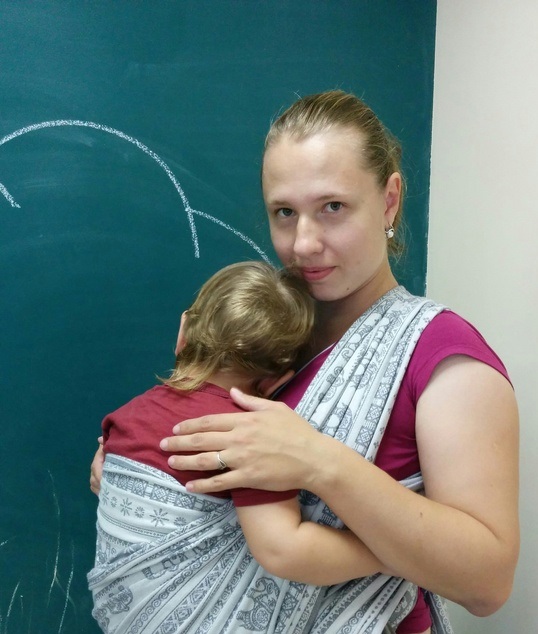 Итак, резюме. Очень красивый шарф, мягкий сам по себе, не скользит при намотке, хорошо держит. Довольно плотный и объемный. На мой взгляд, подойдет для малышей месяцев от шести. И отличный вариант для тяжелых и подросших деток. Не отказалась бы иметь такой в стопке через 2-3 месяца.