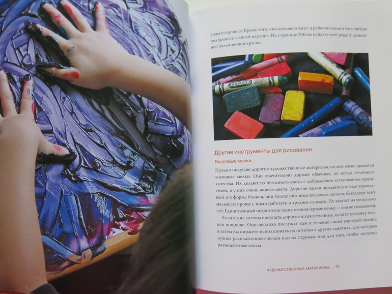 Нина не рисовала, не лепила до четырех лет, и я уже смирилась, что ребенок "в меня" и просто - не любитель...А тут у меня было такое чувство, как будто автор взяла меня за руку и сказала - теперь все будет по-другому. Посмотри на мою семью, как здорово жить, создавая и экспериментируя. И у вас может быть так же, или немного иначе, или совсем по-своему, но главное - может быть!