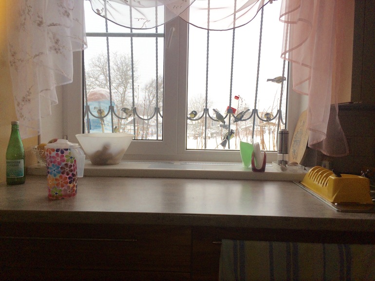 У меня тут родители мужа придумали- повесили сало на решётки окон.