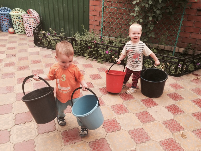 Во дворе нас много , ибо живем у бабушки . Итог- поллета приболели и вот сейчас Кирилл уже почти не кашляет, а Лиса вчера температурила. Сегодня на руках. Надо на море в обчем!