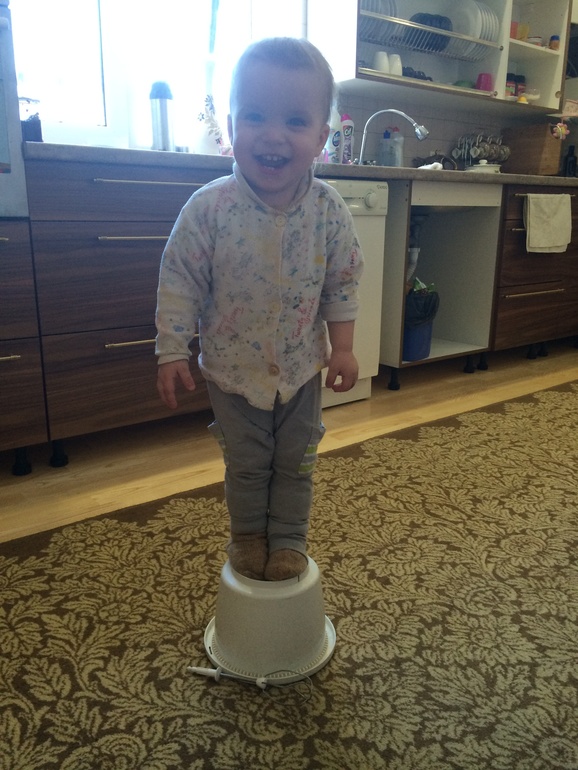Любит накидать сухарей в чай и ложкой их вылавливать. Обожает переливание из стакана в стакан!