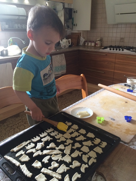 Ага, теперь по примеру моего сына, смазываем свои язычки)) и в духовку до румяности. Мне нравится, когда они сильно нарумяненные, ещё минута и сгорят)))