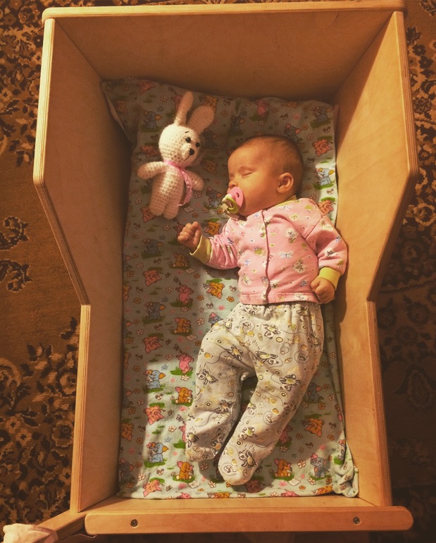 Вчера прям драка у неё была с бурёнкой, которая на кроватке висит))) Настюха надавала ей лещей)))
