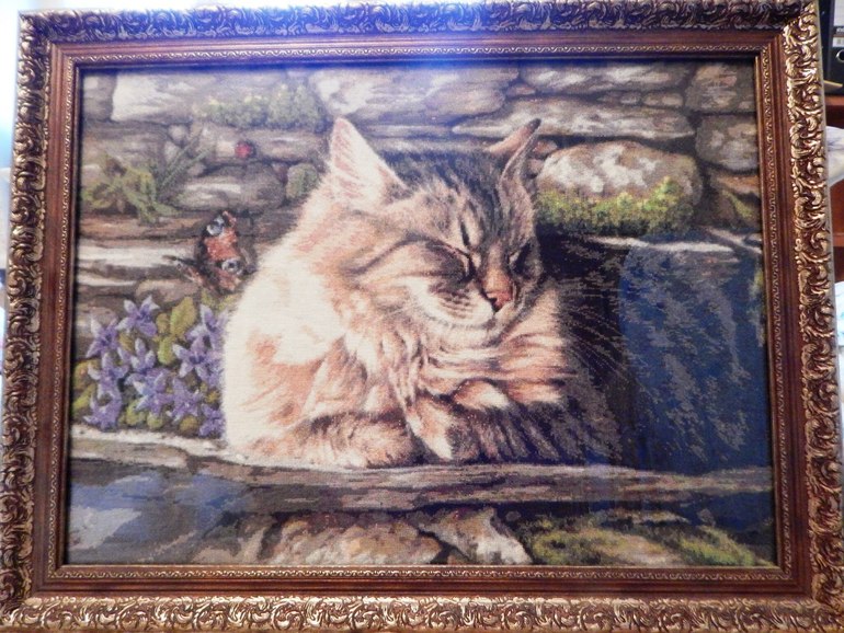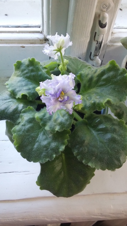 Покажу свои вышивки... а фиалок цветущих сейчас одна(не цвели совсем в жару,сейчас набипают бутоны)