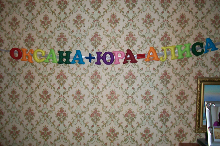 Сшила для девушки Оксаны радужную именную супергирлянду!длина 2 метра , высота букв 11 см.Долго искала где же сфотографировать!