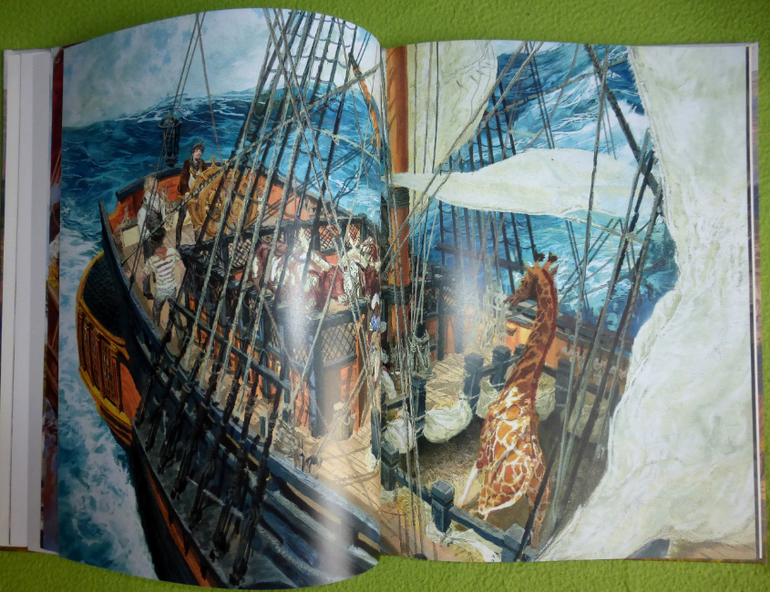 Иллюстрации к книге созданы известным французским художником Лораном Гапайяром. Его невероятно легкие, красивые и натуралистичные рисунки прекрасно дополняют историю с приключенческим текстом автора и помогают детям почувствовать себя участником приключений и вместе с жирафой пройти весь путь: отправиться из жаркой африканской саванны в плавание на корабле с алыми парусами, а затем прибыть в Марсель, и уже оттуда пересечь почти всю Францию и появиться перед самим королем!