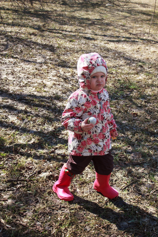 Утром Викуля надела резиновые сапоги в надежде побегать после сада по лужам, но лужи мы не нашли. Точнее одну нашли, но очень маленькую. Малышка немного расстроилась.