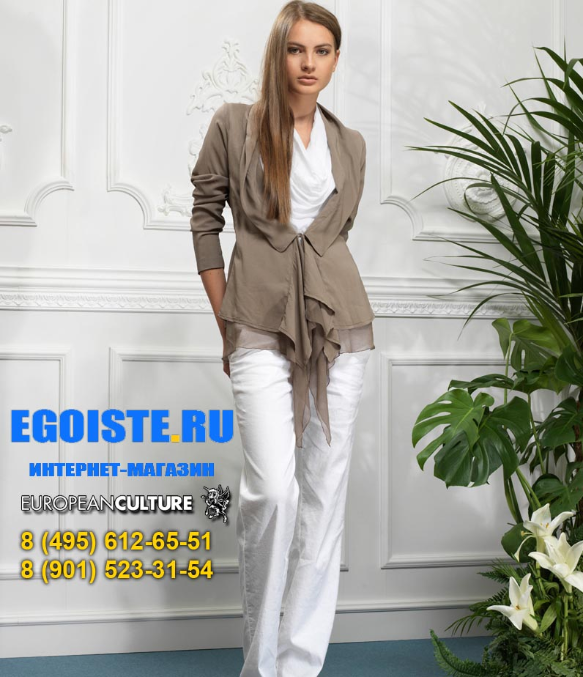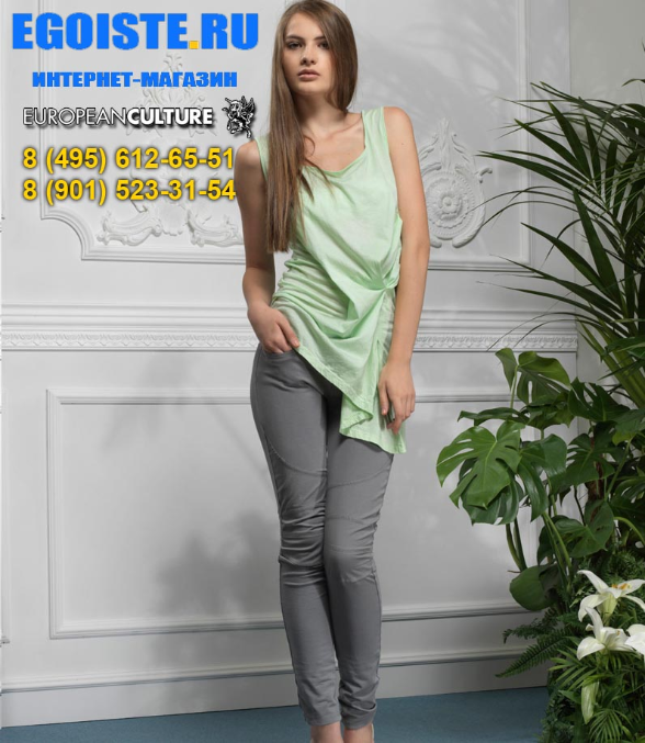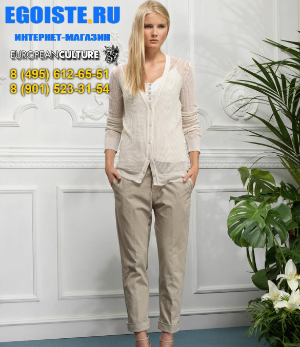Предлагаю Вашему вниманию одежду EUROPEAN CULTURE для повседневной носки, для того что бы каждый день выглядеть стильно и красиво. Итальянская компания EUROPEAN CULTURE широко известна не только в Европе, но и за ее пределами. В России одежда EUROPEAN CULTURE становиться все популярнее за счет качества используемых материалов, неизменного стиля, комфорта при носке. В новой коллекции весна-лето 2013 EUROPEAN CULTURE использует самые тончайшие ткани на хлопковой основе, более 95% всех моделей EUROPEAN CULTURE изготовлены из 100% хлопка высочайшего качества! В покраске тканей используются натуральные красители, что делает такими нежными цвета женской коллекции EUROPEAN CULTURE. EUROPEAN CULTURE-это одежда для повседневной носки, за счет двухслойной тонкой ткани из хлопка, даже в самую жаркую погоду Вы будете себя чувствовать комфортно, стильно, привлекательно!