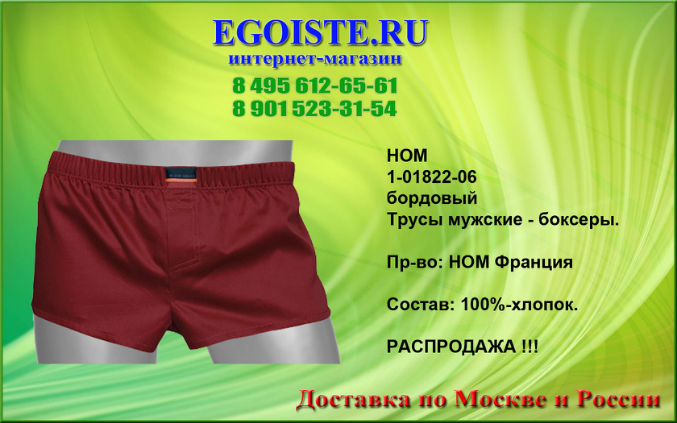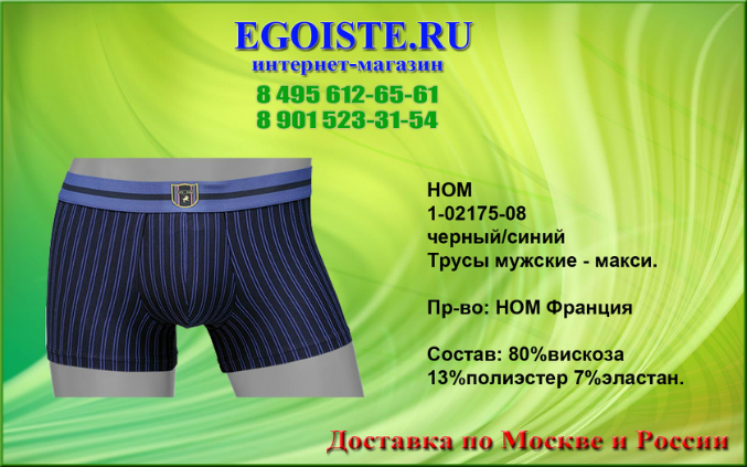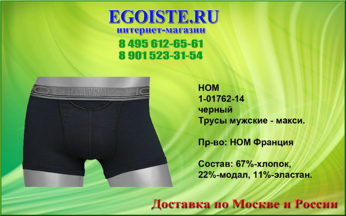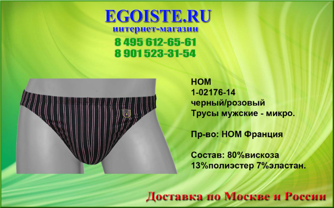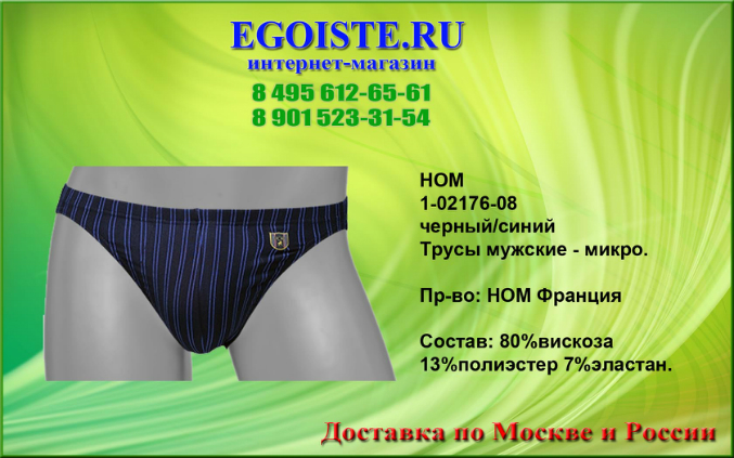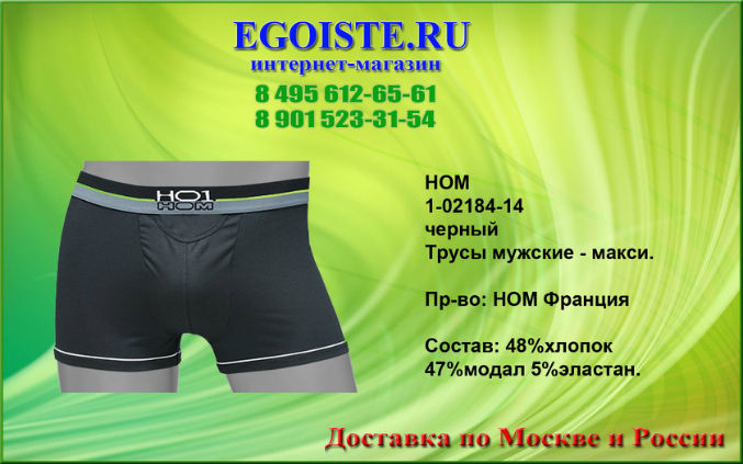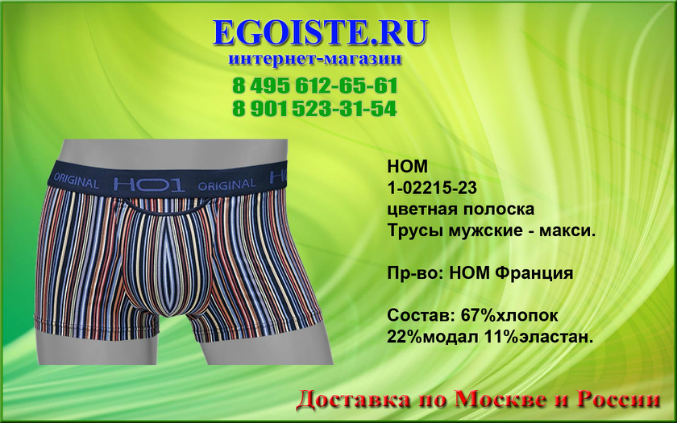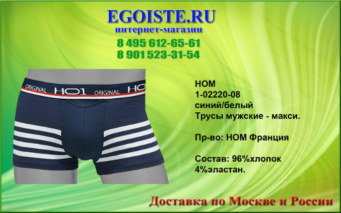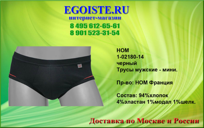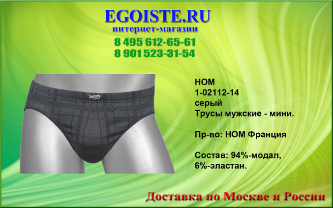 Не обратить внимания на такое качество мужского белья от французкой компании HOM просто нельзя. Многие привыкли отдавать предпочтение фасонам белья,но не как его качеству. Ранее мы выбирали белье для себя-исключительно в розничных магазинах,попутно делая покупку ))). Теперь все за интернет-торговлей. Покупая белье Hom Вы в миллионе случаев не ошибетесь выбрав эту марку. Преимущества этого белья-прекрасно держит форму даже при длительном пользовании,к примеру,Вы успеете выкинуть несколько комплектов белья DIM прежде чем задумаетесь о покупке нового белья HOM. В производстве мужского белья, компания HOM использует только качественные материалы из натуральных и сентетических волокон,а так же запатентованные компанией и выпускаемые только ей модели со своеобразным гульфиком, скажу-что это на миллион раз лучше чем те к которым мы привыкли. Помимо мужского белья HOM France представлен огромный ассортимент и других европейских марок мужского белья. В любом случае-без покупки не останетесь. И не тратьте больше свое драгоценное время на походы по магазинам,оформив заказ на нашем сайте,курьер доставит Вам заказ согласно указанных правил доставки на сайте,а если Вы хотите приобрести мужское белье в розничном магазине,то на сайте указанны адреса наших магазинов мужского белья.