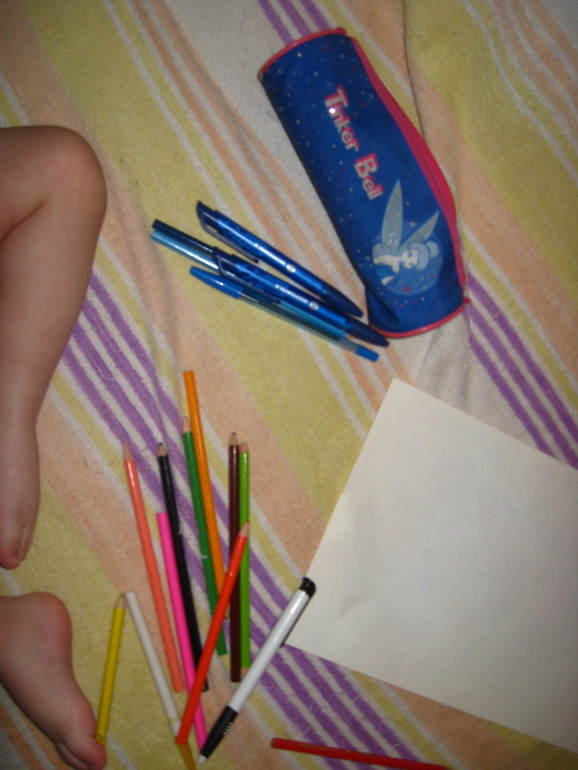 Мама мыла посуду, а Егор сам себе придумал занятие. Взял мамин пенал и разбирал карандаши, отбирал отдельно синие.