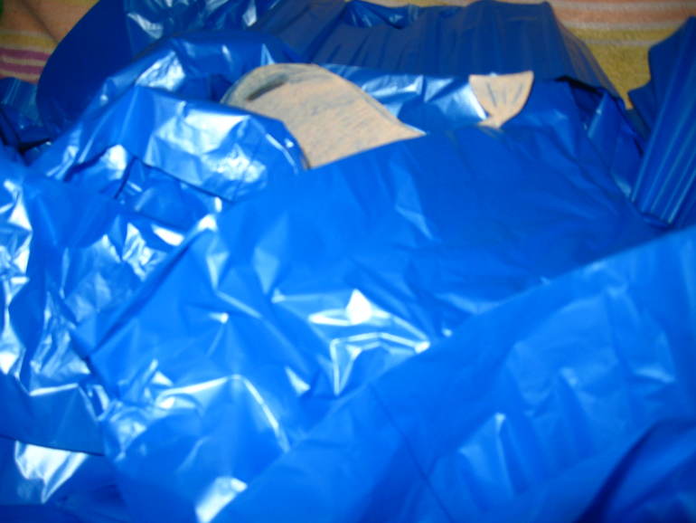 Раскрученные пакеты меня навели на мысль немного изменить игру в кита. Я разложила их на диване и это было наше море.