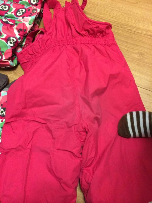 Все в отличном состоянии, штанишки на попе чуть порты при носке незаметно,даже на фото не удается передать, коленки в порядке. Все остальное как новенькое,носим вещи аккуратно. Брали в 1.2,сейчас нам почти 2.5 и все равно как раз, на возраст около двух - идеально. Размер стоит 86.