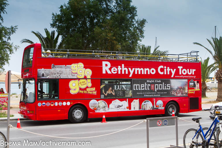 А вот и Rethymno City Tour Bus! Великолепное средство осмотра сразу всех достопримечательностей городка (с аудио гидом и дружелюбным водителем). Можно сойти на любой остановке, погулять и вернуться уже в следующий автобус!