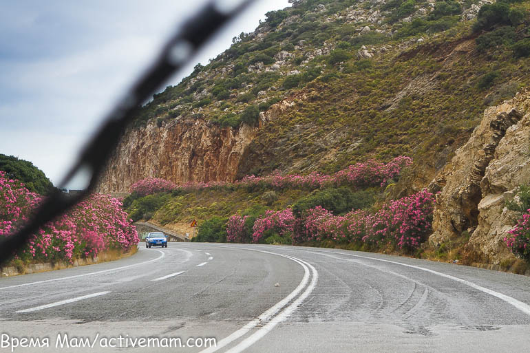 И мы наслаждались.. Цветущими олеандрами, сдерживающими корнями камнепады и оползни, уютными бухточками и туристическими бухтами, горами, врастающими прямо в дорогу, морковкой, черешней и, о ужас, резиновым конфетами, купленными детям за приличное поведение…