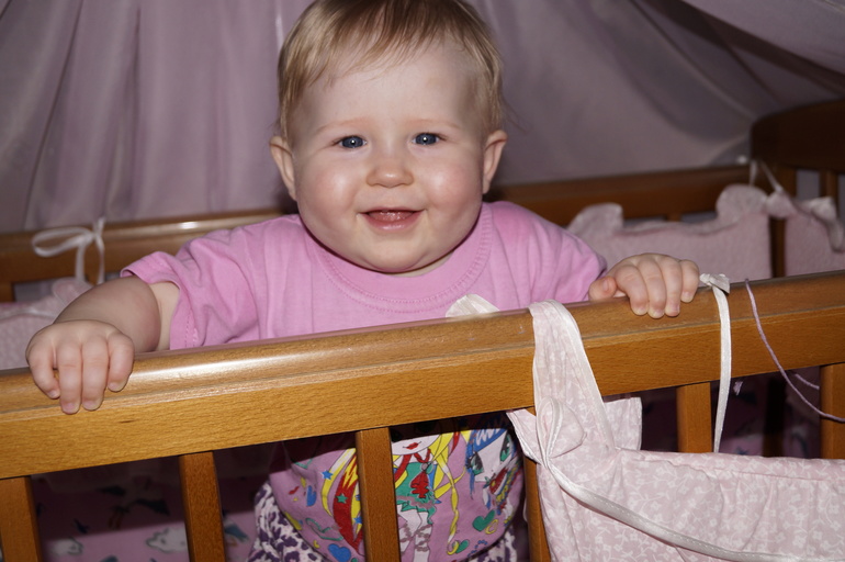 Раньше засыпала в кроватке, а теперь просекла фишку, что если мамкать и повиснуть у мамки на шее, то она обязательно возьмёт на руки и покачает спать.