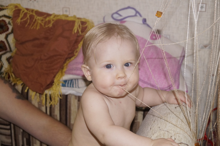 Мы боимся, когда соседи стучат. Сразу таращит глаза и быстро-быстро ползёт и забирается на руки.
