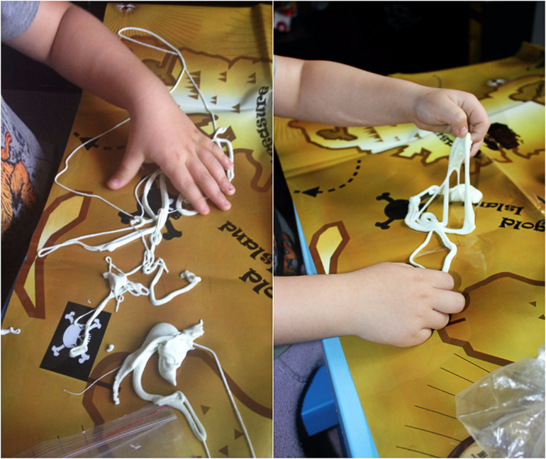 Всё,хэндгам готов!Правда у нас не получился,он не был тягучим,напоминал сухую губку,которую можно легко разрезать или ровно разорвать.Кажется я переборщила с тетрабората,поэтому пришлось все повторить,на что Темик с удовольствием согласился))