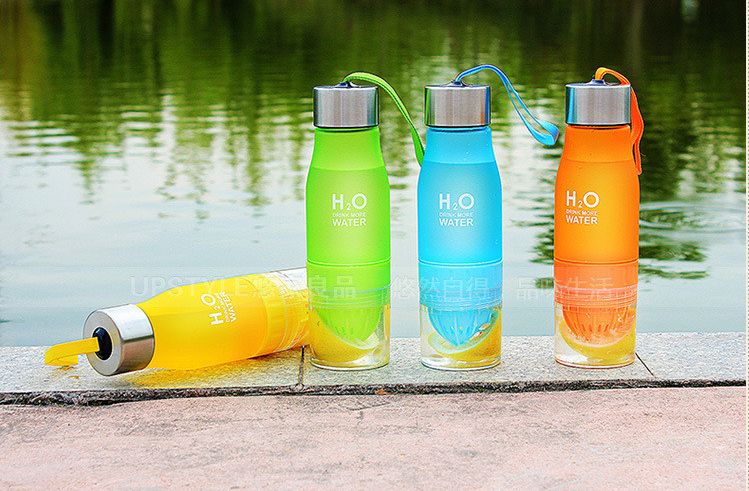 Свежая фруктовая вода теперь всегда будет с вами! Это многофункциональная бутылочка с соковыжималкой для быстрого приготовления и употребления прохладительных напитков. Она состоит из двух модулей: завинчивающейся соковыжималки для цитрусовых и емкости с пластиковой крышкой. Сначала необходимо взять разрезанный напополам лимон , лайм, апельсин или мандарин среднего размера и выжать его в перевернутую бутылочку. Затем в бутылку заливается холодная вода и немного льда. После легкого встряхивания напиток готов к употреблению! Эта лимонная водичка очень вкусная и полезная, обогащенная витамином С, такую воду приятно пить, а так же она будет поддерживать ваш водный баланс в течение всего дня!