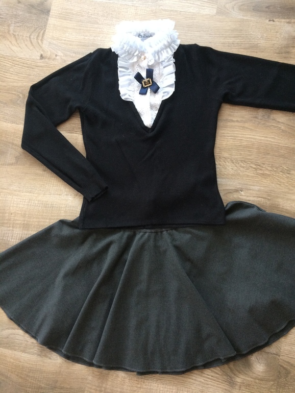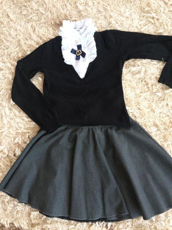 Школьная форма нашей любимой фирмы. Удобство и качество гарантирую). Юбочка верх трикотажный на резинке с логотипом стразиками, подъюбник х/б, хорошо держит форму. Кофточка очень мягкая и тепленькая. Юбка размер 152 но мы одевали до 160 точно, кофточка 158 в размер, можно и раньше одевать.