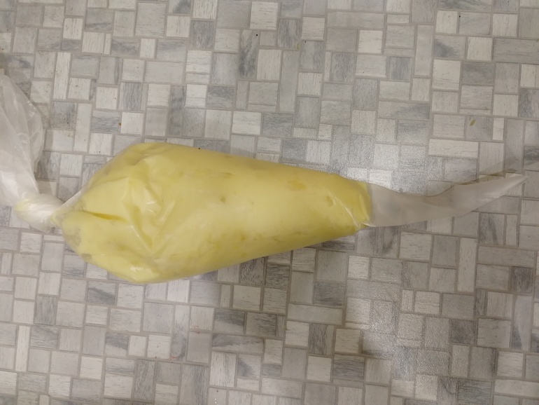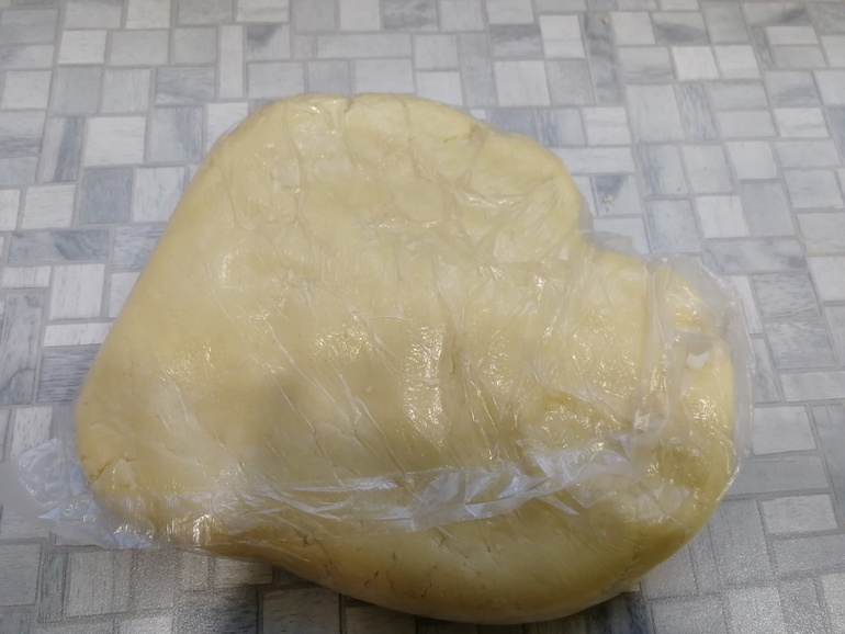 Замесить тесто, переложить в пакет и убрать в холодильник на час: