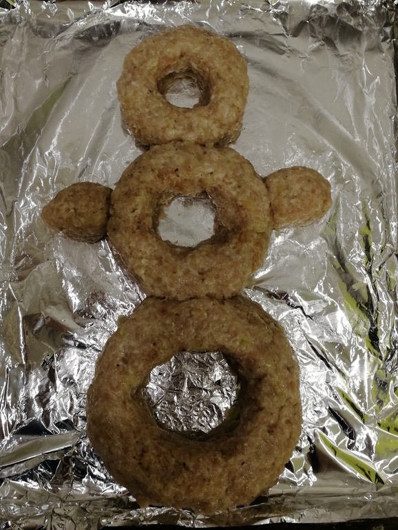 Сформировать на противне мокрыми руками 3 кольца для снеговика: