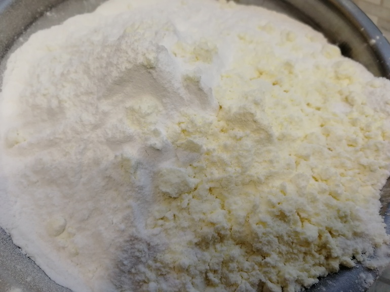 Уже приготовили (и они ждут своего места на праздничном столе) немецкое печенье "Мышата". Отвесить 150 г муки, 200 г кукурузного крахмала, 20 г сухого молока, щепотку соли: