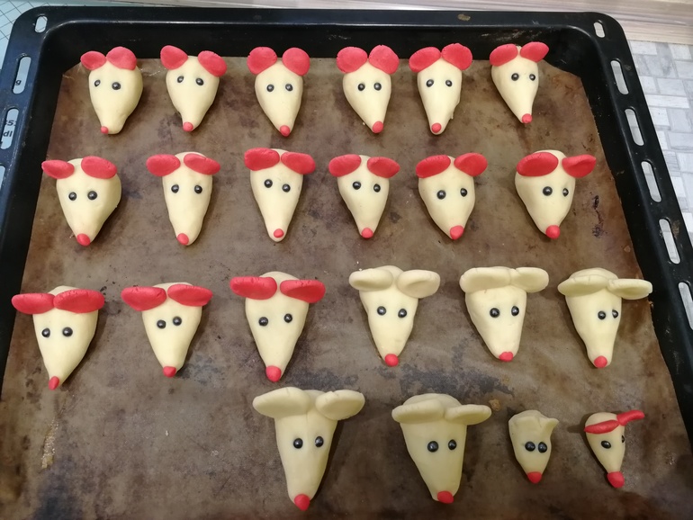 И просто мышек из закусочной массы можно сделать (не мое фото):