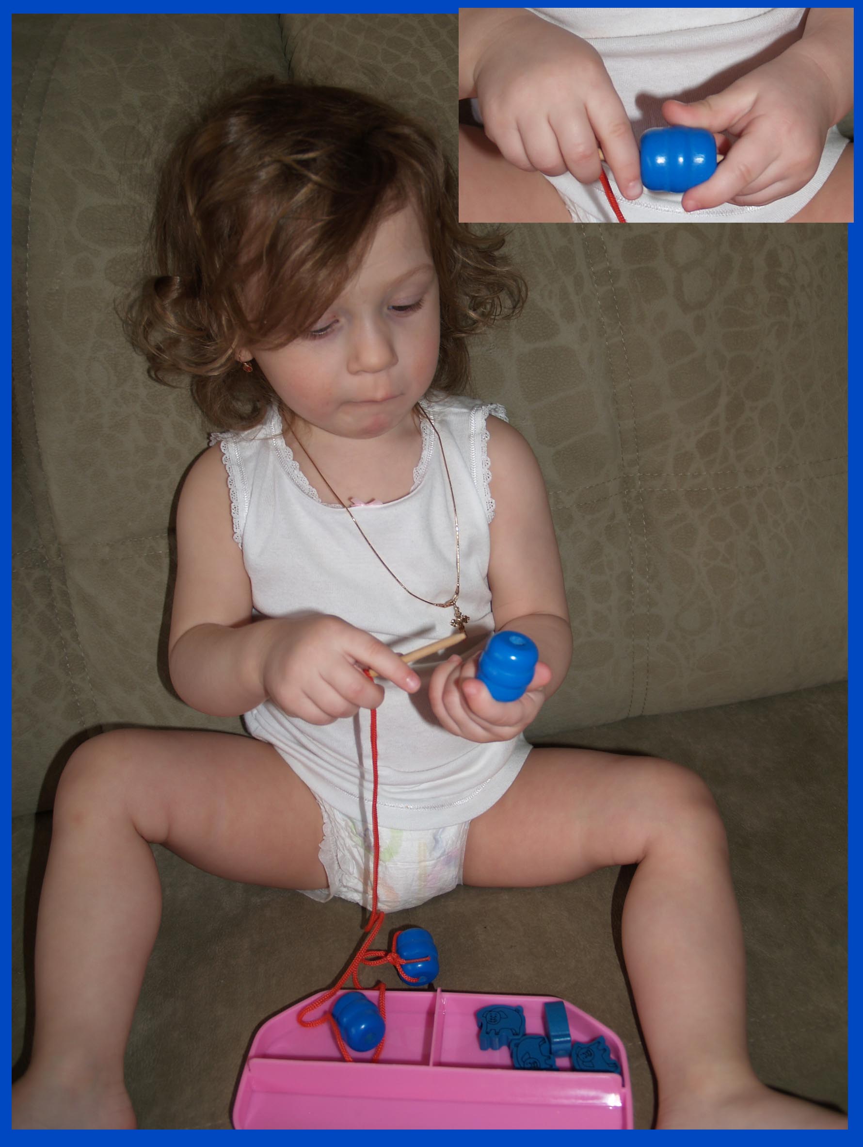 После моих стоекратных повторений - "Это синий? Да? Даа! А это какой? Красный? Да? Даа!" и тд, Анюта стала иногда повторять "Да" и пыталась сказать "синий" - выдала "си" )))
