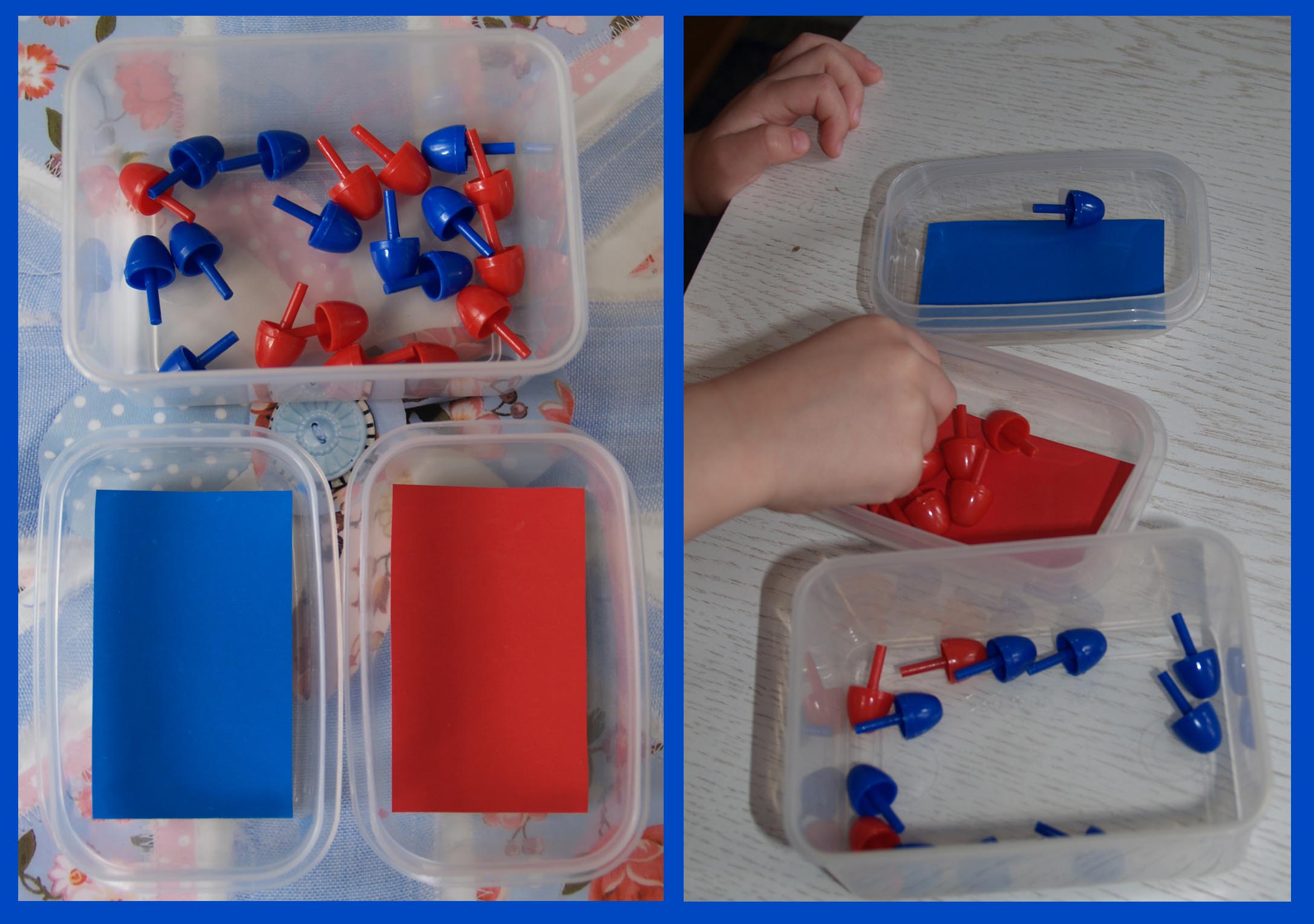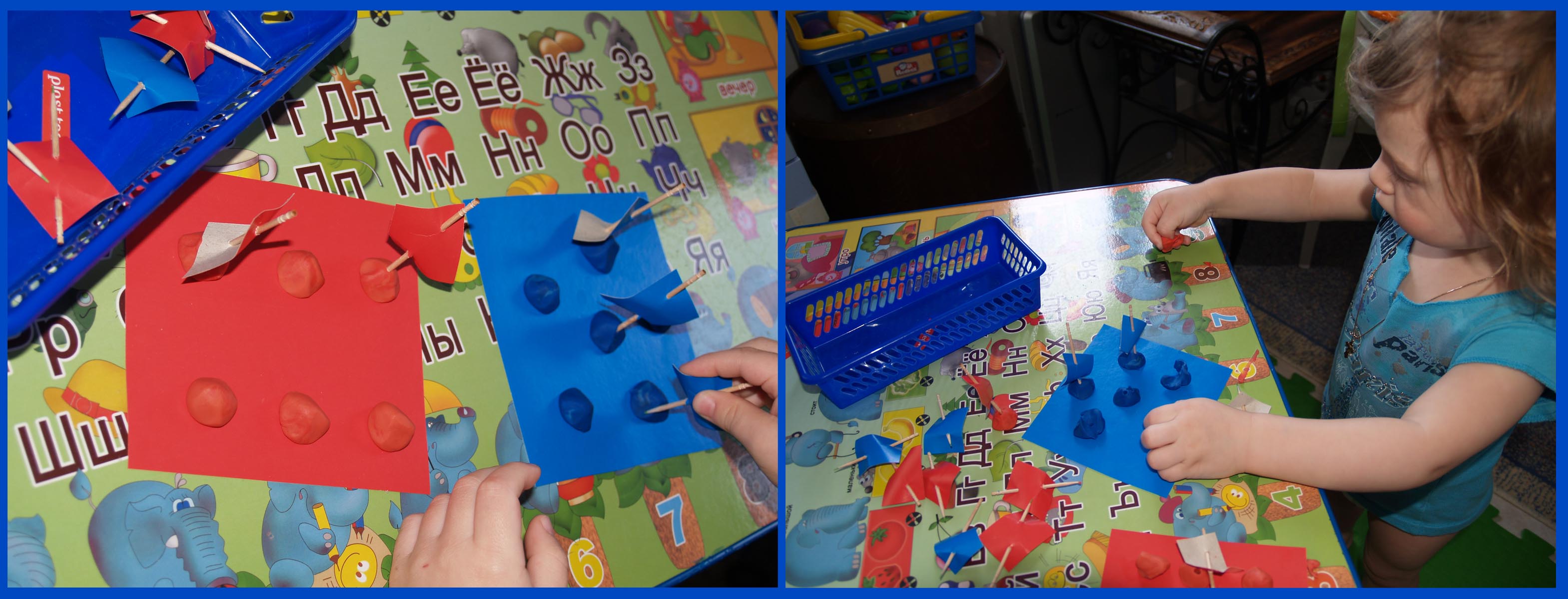 Сортируем фишки из мозаики. Ваня в этот раз отдал предпочтение красному, одну синюю фишку отправил в синий домик, потом выбрал все крысные, отправил в красный и удалился ))