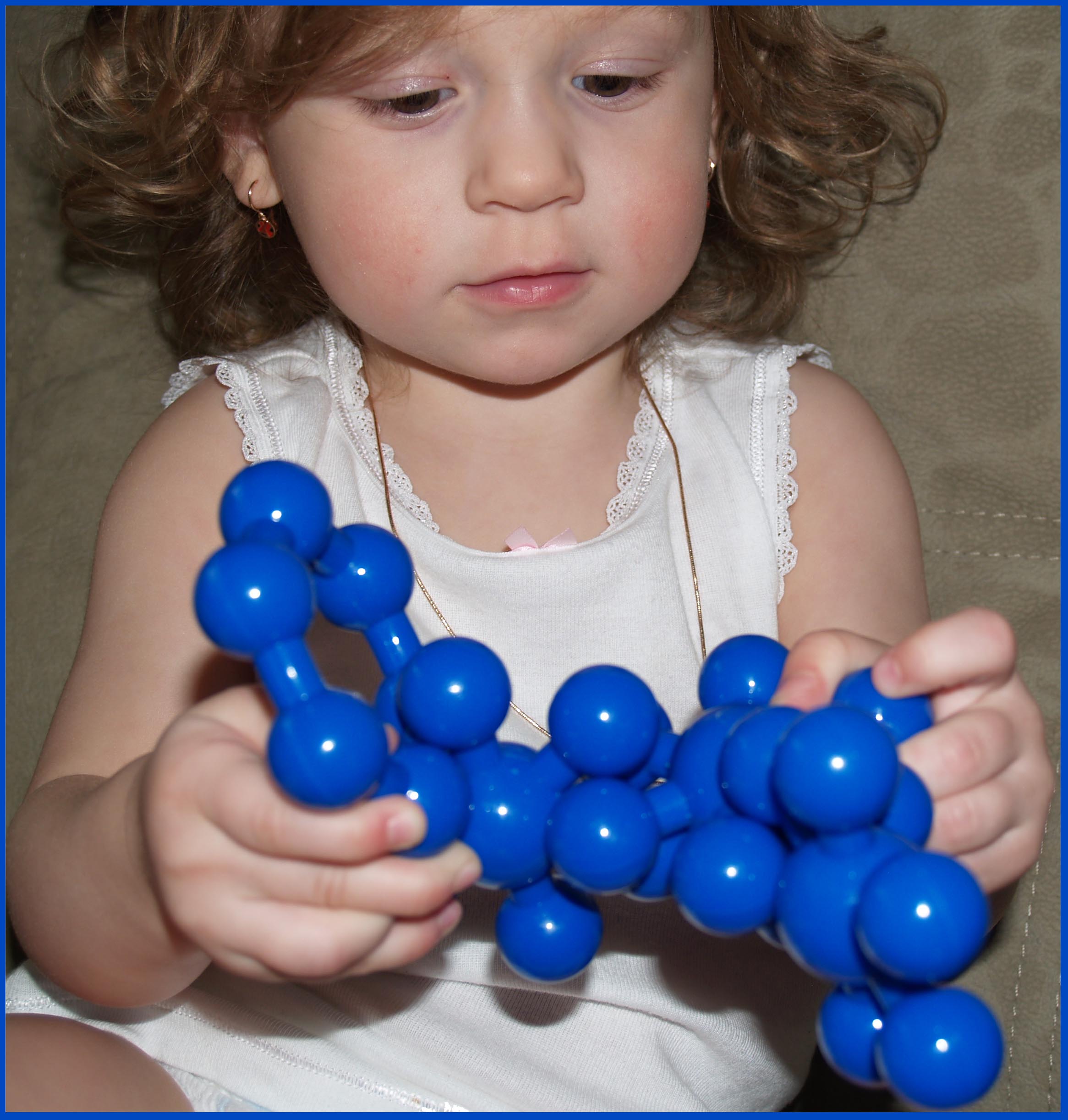 Потом показала Ане. Ох, ну ни в какую не хочет - дурачится и все ))) Даже зубочистки втыкать не захотела, а любит. Разнесла все и все ))))