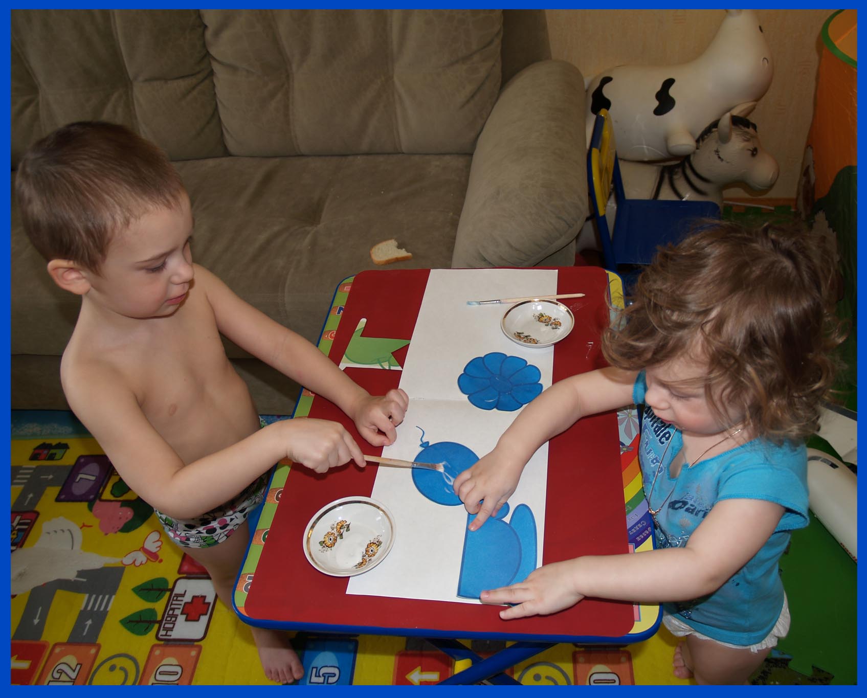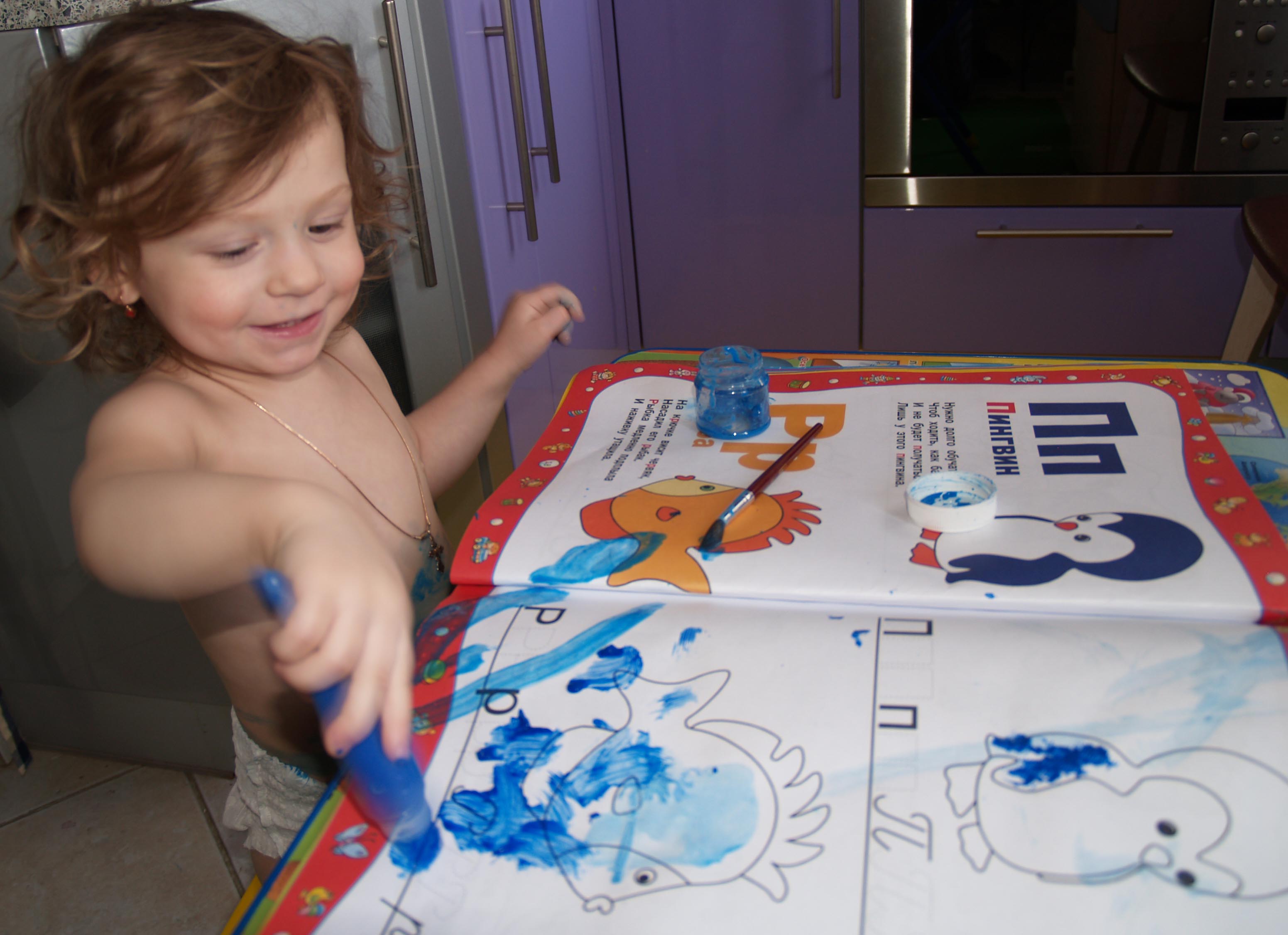 Сначала дала Ване, потому как после Ани там бы делать было нечего - после нее полный разгром )) Ваня поставил пару красных, синие все - любимый его цвет и ушел ))