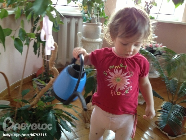 Аннушка решила, что бабушкины цветочки пора полить )) и полила... и цветы и все вокруг ))