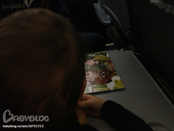 В самолете мы развлекались мягкими пазлами из 12 деталей Винни Пух, Крокодил Гена и Ну Погоди, еще собрали 2 раза мягкий пазл самолет. На ура пошла жвачка для рук PUTTY peeps - она очень понравилась всем - мягкая, пластичная, совершенно не липнет к рукам, еще и глАзки к ней прилагаются, чтоб лепить различных существ )). Игрушка для рисования KS KIDS тоже очень пригодилась. Открыли пару новых маленьких машинок. И конечно на взлете и посадке конфетки ))