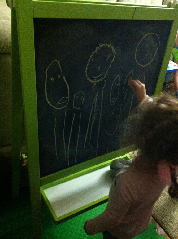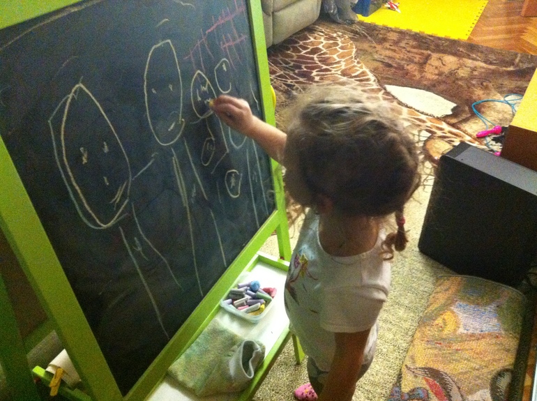 Рисуем. Аня наконец начала разукрашивать, не выходя за границы - ох и долго мы к этому карабкались ))) и, о счастье! рисует семью ))))