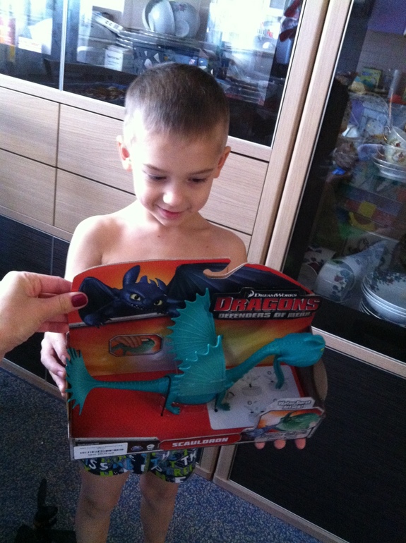 Но вчера Ванечка ходил со мной по делам и нам попалась витрина детского магазина ))) Ну мимо этих драконов из МФ "Как приручить дракона" даже я не смогла пройти )))) Анюте тоже выбрали )
