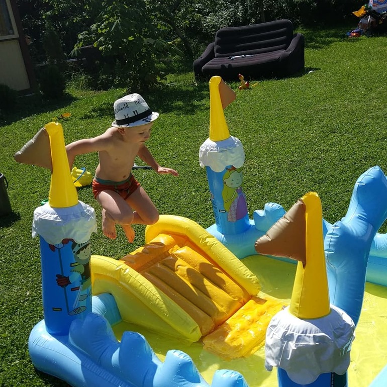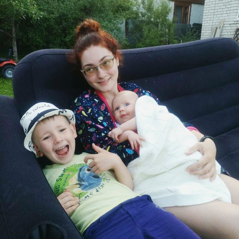 Федяй по прежнему относится к братишке с позитивом, если я чем то занята, а Миха плачет- бежит его успокаивать, иногда даже чересчур эмоционально) но видно всё равно, что именно моего участия ему порой не хватает, тем более мы весь день дома втроём и я чаще всего с малышом на руках. Очень надеюсь что со временем, когда Мишка подрастёт и сможет хотя бы сидеть в стульчике, этот перекос мы устраним 😪 А вообще Федяю на даче жить нравится, тут у него свои "владения" , трактор, надувные игрушки, дед раз в неделю берёт его с собой на рыбалку, вечерами всей семьёй ужинаем, общаемся, и Федке прям по кайфу это всё)) когда была жара, мы с ним прямо с утра выходили на улицу, наливали маленький бассейн, Миху катали в коляске по тенечку, вобщем красота) А, ну и 5-летие отметили на даче, просто позвали родных с детьми ( а семья с каждым годом растет 🤗 ), вытащили мелким игрушки, а взрослым- стол и надувной диван)) вменяемых фоток нет,тк обычно я снимаю на телефон,а тут с малышом на руках вообще было не до того, ну зато много фото наших дачных будней))Вот такие наши дела, доживаем тут август и вперёд- в новый учебный год 😋