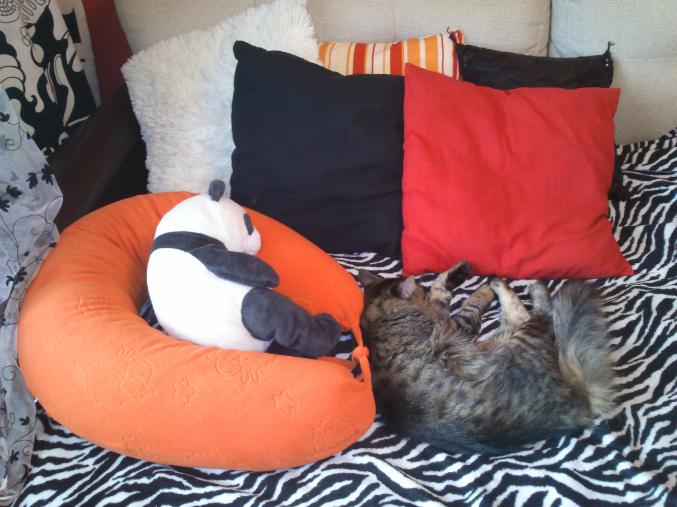 Подушко-сосиска (еще называю её грабоид, как в фильме "дрожь земли") заслуживает отдельного внимания, действительно удобная штука, отдыхают на ней все кому не лень, в качестве модели для фото выступил муж))) Радует монотонная расцветка, нормально вписалась в интерьер к моим икейным морковкам)) Ну и коты само собой всегда рядом))