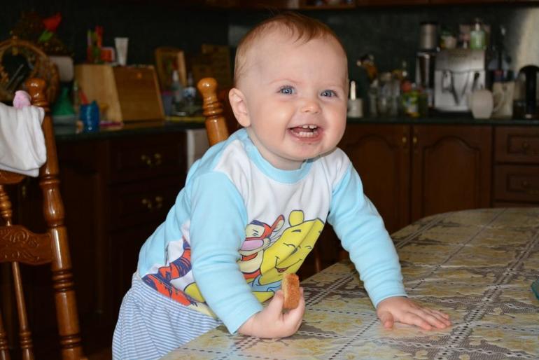 МилашаМилочка наша очень изменилась.Из спокойнейшего невозмутимого ребеночка превращаться начала в упрямую шкоду.Теперь по порядку.Весит Мила около 11 кг. рост .Кушаем давненько со взрослого стола.Каждое утро начинается с рычащего "ам!".В перерывах между основного приема пищи-яблоки.печенье, хлебные корочки.Уже два дня выхватывает у меня ложку и пробует зачерпывать ею пищу.Еду не разминаю давно.У Милы по 4 верхних-нижних-жевательных.Жует отлично.Просыпаемся около недели в 9-9.30 (раньше в 7.30-8.00).Завтракаем кашей на воде(убрала и козье молоко пока:сыпь на животе и ляжечках,на щеках).Играем.Горшок не воспринимает.Орёт и вырывается.Дневной сон раньше был с 11.00 до 13.00,а вечерний с 17.00 до 18.30..Теперь сон один,дневной (ввиду позднего подъема утром).С 12.00-12.30 до 14.00-14.30.
