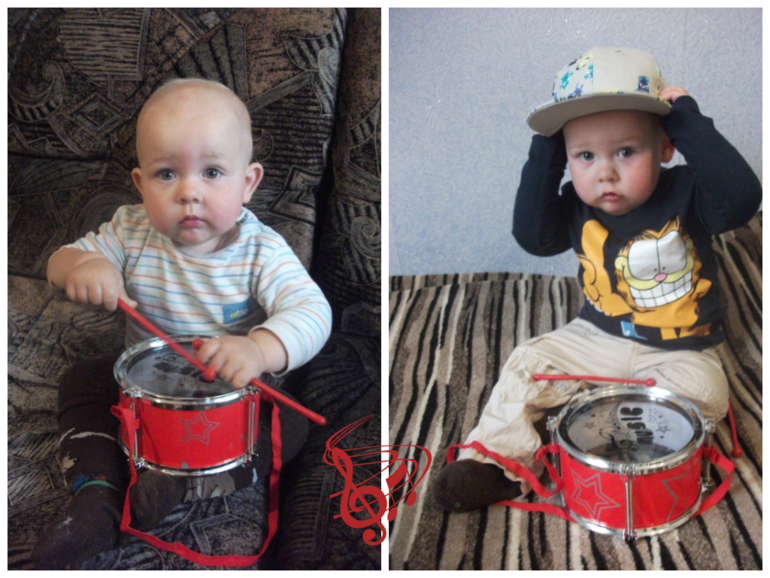 Обожает гитару! Если папа беретт ее в руки, то он пляшет, поет и сам пытается поиграть))