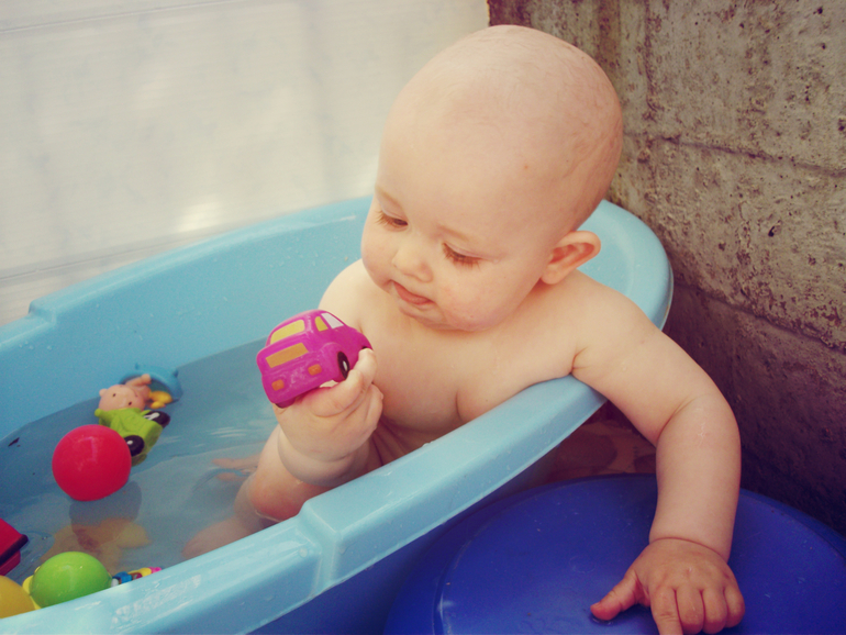 Плюс во время купания он сам постоянно включает себе холодную воду и поливает на пузико из душа))