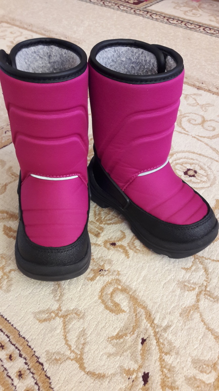 Не промокают, легкие, теплые, ребенку удобно самостоятельно надевать. Регулируется объем в голени, подойдет и на худую и на пухлую ножку. В идеальном состоянии.