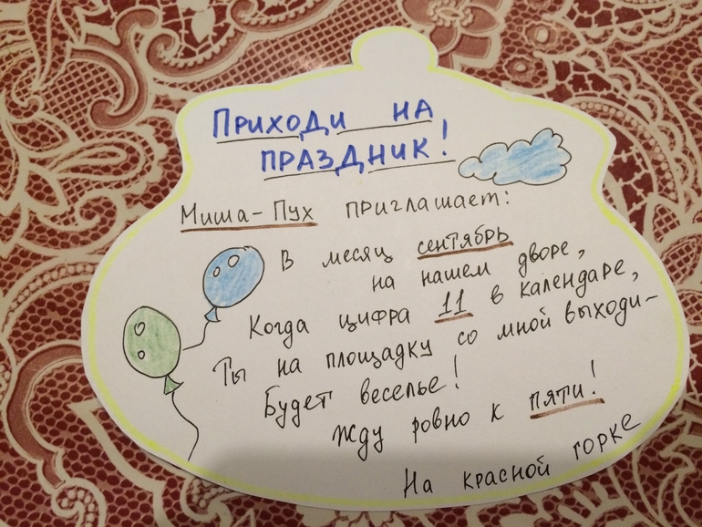 P. S. вот такие приглашения на праздник мы раздавали друзьям во дворе: