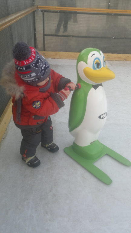 Это сладкоежка))) готовят место еще под 2 подобные качели. Зимой кстати у нас был каток парафиновый. Гадость редкостная, но за неимением выбора катались и натирали мозоли)) Были там вот такие пингвины, а еще медведи.