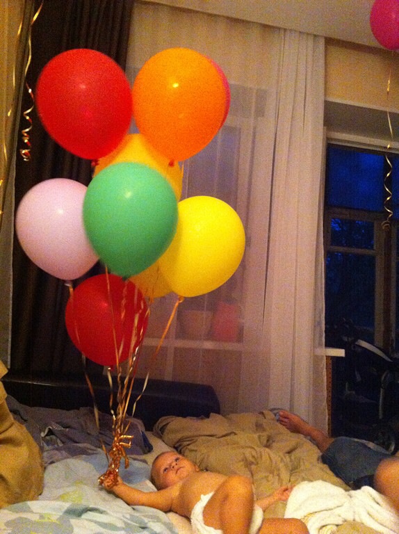 А это все гости уехали ребенок устал, но шарики не отпускает))) потом потребовала надеть на нее папину футболку