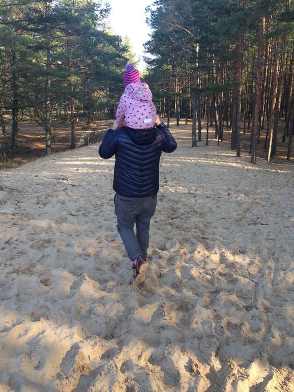 Эту фотку я назову "Долгая дорога в дюны " 😄 Васюне было тяжеловато идти на обратном пути. Под горку и в мягком песке , проваливались ноги. В общем папина шея в помощь 😆