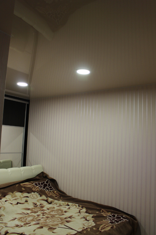 У нас стоит двухспальная кровать и шкаф купе на всю нишу.Места не много на нам предостаточно.