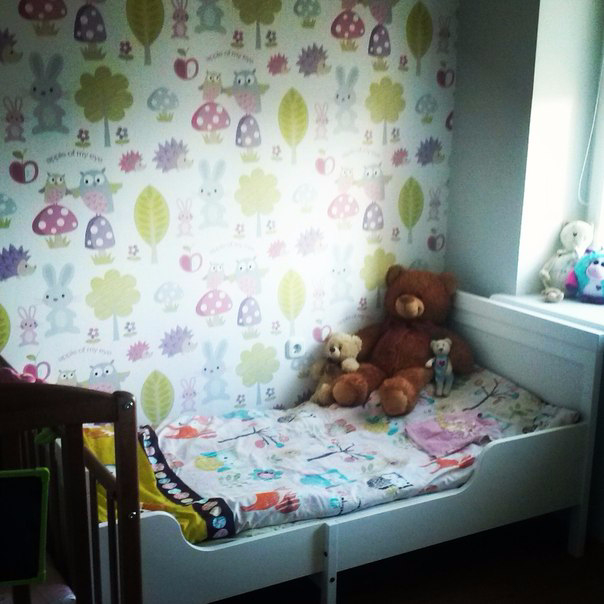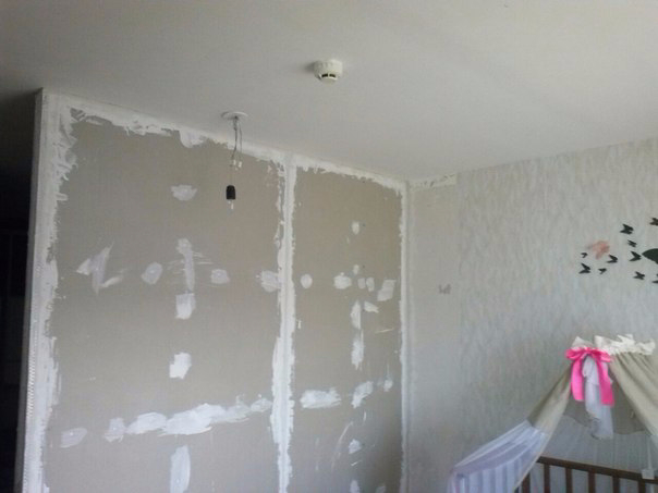 Так, а теперь о ремонте.Живём мы в однакомнатной квартире.Со второй беременностью стал вопрос о том ,что нужно как то разделить комнату на две части.Плохо конечно что в комнате одно окно,но хорошо что имеется ниша.Решили что детская часть будет возле окна,деткам нужен свет,рисовать,лепить и т.д.Разделить решили стеной из гипсокортона.Чего это мне стоило....Всю неделю жили у мамы,т.к. квартира однакомнатная и спать было негде.Продали наш огромный диван и купили себе кровать,Полинке тоже купили кровать ИКЕА раздвижную(знаете очень удобно,можно вместе спать)Короче вот что получилось,ремонт не закончен нету дверей и потолки не натянули ещё.